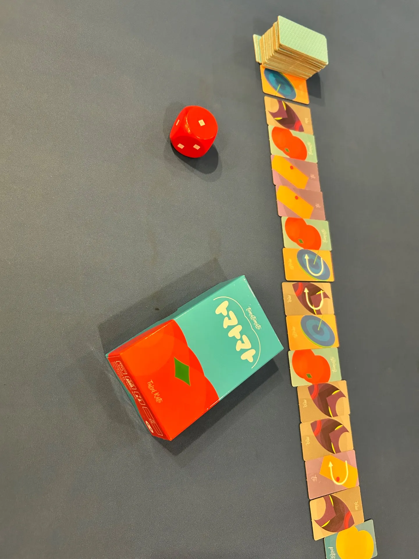 カードには「トマト」や「マト」などの言葉が書かれていて、重ねるごとにどんどん長くなっていきます。